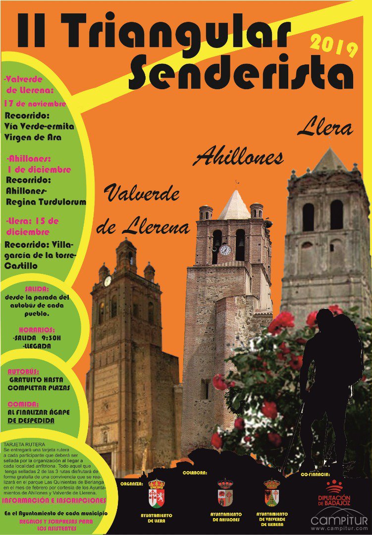 Los próximos días, 17 de noviembre y 1 y 15 de diciembre se celebra la II Triangular Cultural Senderista entre las poblaciones de Ahillones, Llera y Valverde de Llerena.